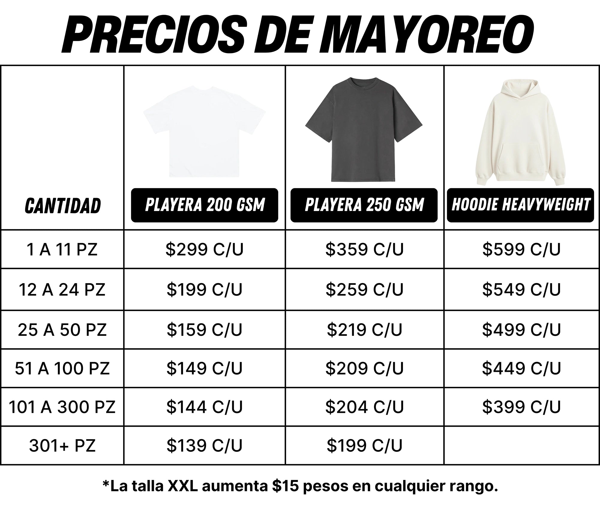 Puedes combinar tallas, colores y gramaje, Los precios de mayoreo igualmente se aplican al agregar al carrito.